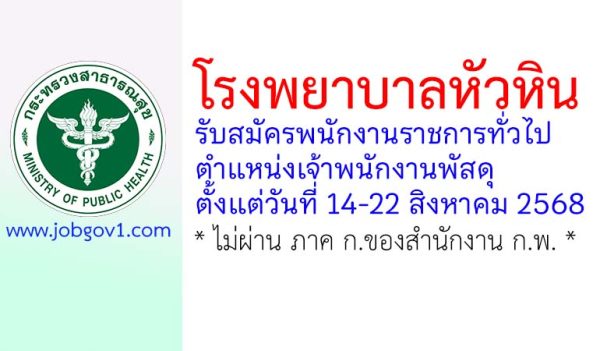 โรงพยาบาลหัวหิน รับสมัครพนักงานราชการทั่วไป ตำแหน่งเจ้าพนักงานพัสดุ ตั้งแต่วันที่ 14-22 สิงหาคม 2568