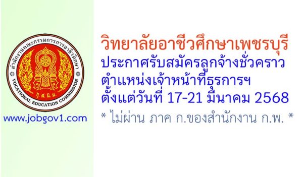 สำนักงานพาณิชย์จังหวัดเพชรบุรี รับสมัครลูกจ้างเหมาบริการ ตำแหน่งเจ้าหน้าที่ประจำศูนย์ปฏิบัติการกลุ่มจังหวัด ตั้งแต่วันที่ 6-17 ตุลาคม 2568