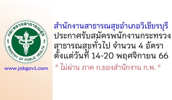 สำนักงานสาธารณสุขอำเภอศรีเทพ รับสมัครพนักงานกระทรวงสาธารณสุขทั่วไป 3 อัตรา ตั้งแต่วันที่ 24-28 พฤศจิกายน 2568