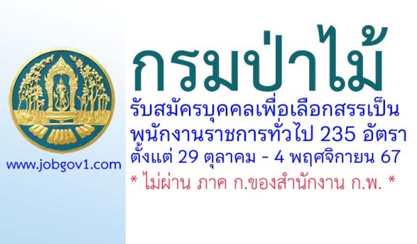 กรมป่าไม้ รับสมัครบุคคลเพื่อเลือกสรรเป็นพนักงานราชการทั่วไป 122 อัตรา ตั้งแต่วันที่ 1-10 ตุลาคม 2568