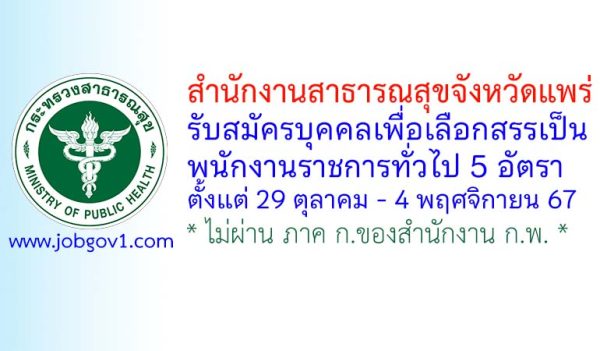 สำนักงานสาธารณสุขจังหวัดแพร่ รับสมัครพนักงานกระทรวงสาธารณสุขทั่วไป 22 อัตรา