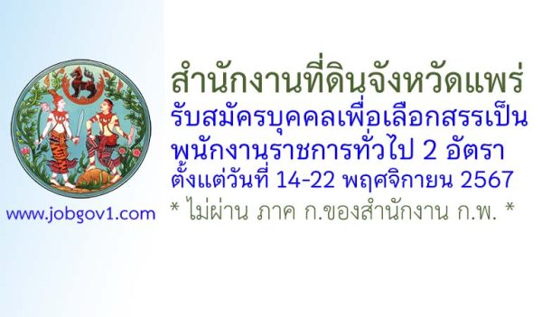 สพป.แพร่ เขต 1 รับสมัครพนักงานราชการทั่วไป ตำแหน่งพนักงานธุรการ ตั้งแต่วัน 18-22 สิงหาคม 2568