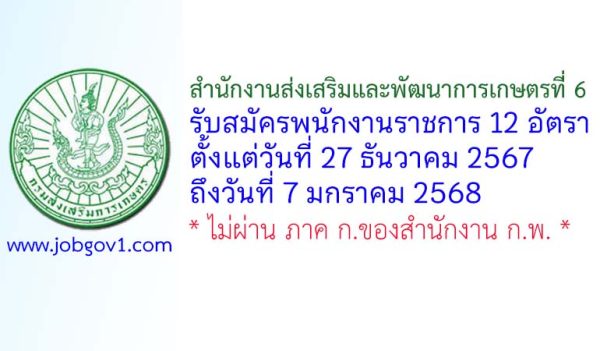 สำนักงานส่งเสริมและพัฒนาการเกษตรที่ 6 จังหวัดเชียงใหม่ รับสมัครบุคคลเพื่อเลือกสรรเป็นพนักงานราชการทั่วไป 3 อัตรา ตั้งแต่วันที่ 18-24 กรกฎาคม 2568