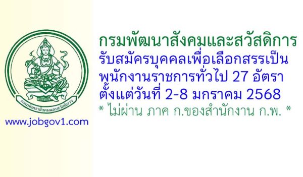 กรมพัฒนาสังคมและสวัสดิการ รับสมัครบุคคลเพื่อเลือกสรรเป็นพนักงานราชการทั่วไป 35 อัตรา ตั้งแต่วันที่ 28 ตุลาคม – 3 พฤศจิกายน 2568