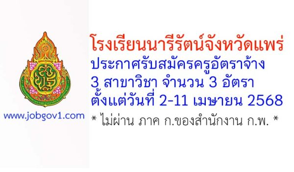 โรงเรียนนารีรัตน์จังหวัดแพร่ รับสมัครครูอัตราจ้าง จำนวน 4 อัตรา ตั้งแต่บัดนี้ถึง 8 ตุลาคม 2568