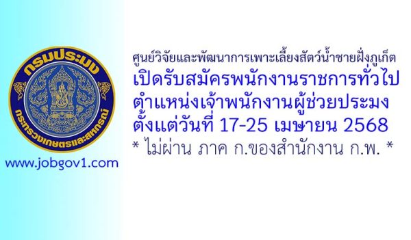 ศูนย์วิจัยและพัฒนาการเพาะเลี้ยงสัตว์น้ำชายฝั่งภูเก็ต รับสมัครพนักงานราชการทั่วไป ตำแหน่งพนักงานผู้ช่วยประมง