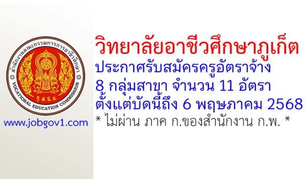 วิทยาลัยอาชีวศึกษาภูเก็ต รับสมัครครูอัตราจ้าง และลูกจ้างชั่วคราว 5 อัตรา ตั้งแต่วันที่ 25-29 สิงหาคม 2568