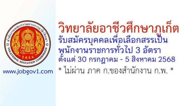 วิทยาลัยอาชีวศึกษาภูเก็ต รับสมัครบุคคลเพื่อเลือกสรรเป็นพนักงานราชการทั่วไป 3 อัตรา ตั้งแต่ 30 กรกฎาคม – 5 สิงหาคม 2568