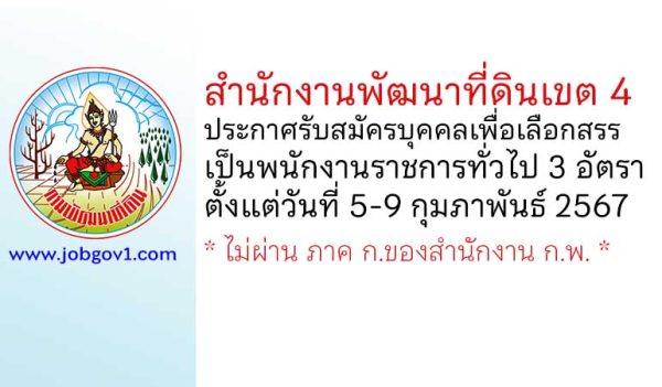 สำนักงานพัฒนาที่ดินเขต 4 รับสมัครบุคคลเพื่อเลือกสรรเป็นพนักงานราชการทั่วไป 5 อัตรา