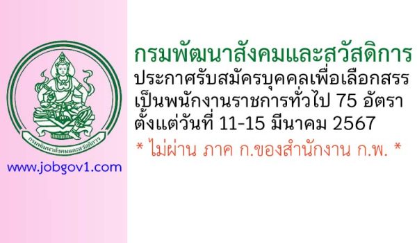 กรมพัฒนาสังคมและสวัสดิการ รับสมัครบุคคลเพื่อเลือกสรรเป็นพนักงานราชการทั่วไป 27 อัตรา ตั้งแต่วันที่ 2-8 มกราคม 2568