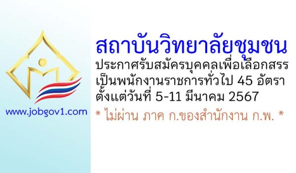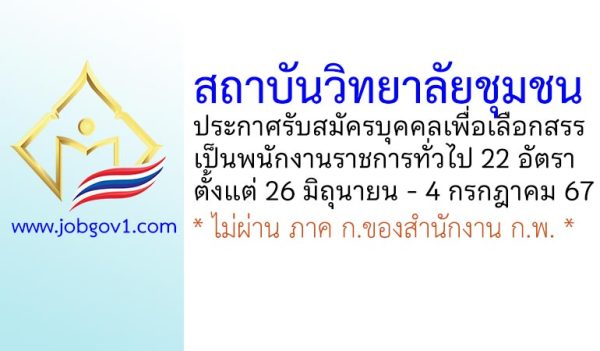 สถาบันวิทยาลัยชุมชน รับสมัครบุคคลเพื่อเลือกสรรเป็นพนักงานราชการทั่วไป 22 อัตรา ตั้งแต่ 26 มิถุนายน – 4 กรกฎาคม 2567