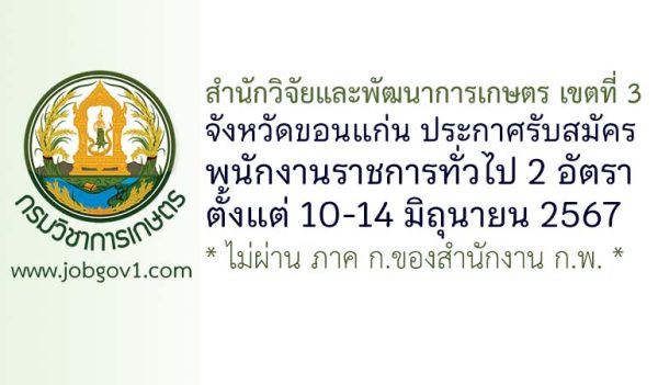 สำนักวิจัยและพัฒนาการเกษตร เขตที่ 3 จังหวัดขอนแก่น รับสมัครพนักงานราชการทั่วไป 2 อัตรา ตั้งแต่วันที่ 10-14 มิถุนายน 2567