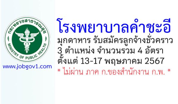 โรงพยาบาลคำชะอี รับสมัครลูกจ้างชั่วคราว 4 อัตรา ตั้งแต่วันที่ 13-17 พฤษภาคม 2567