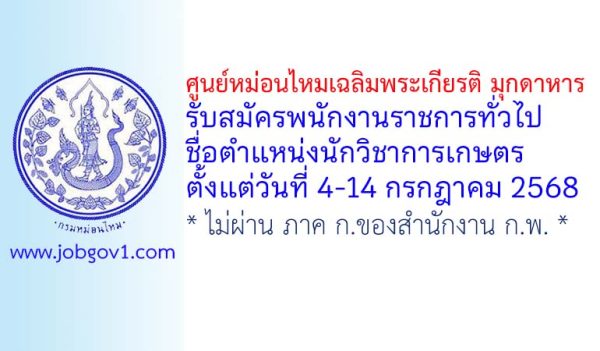 ศูนย์หม่อนไหมเฉลิมพระเกียรติ มุกดาหาร รับสมัครพนักงานราชการทั่วไป ตำแหน่งนักวิชาการเกษตร ตั้งแต่วันที่ 4-14 กรกฎาคม 2568