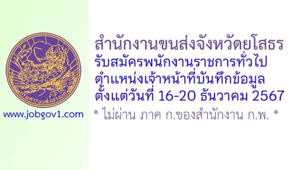 ที่ทำการปกครองจังหวัดยโสธร รับสมัครลูกจ้างเหมาบริการ ตำแหน่งเจ้าหน้าที่บันทึกข้อมูล