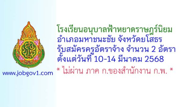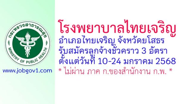 โรงพยาบาลมหาชนะชัย รับสมัครลูกจ้างชั่วคราว 3 อัตรา ตั้งแต่วันที่ 9-16 ตุลาคม 2568