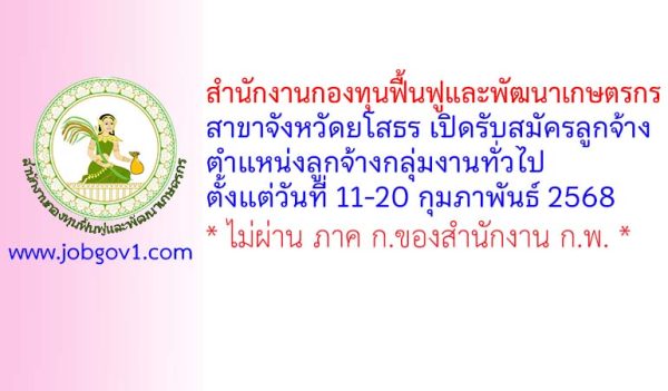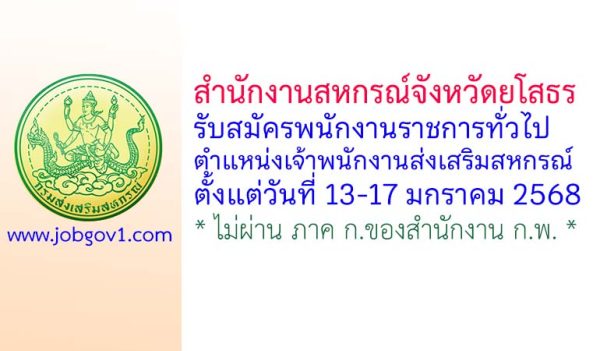 สำนักงาน สกร.ประจำจังหวัดยโสธร รับสมัครบุคคลเพื่อเลือกสรรเป็นพนักงานราชการทั่วไป 2 อัตรา ตั้งแต่วันที่ 17-21 เมษายน 2568