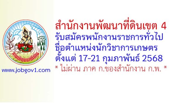 สำนักงานส่งเสริมและพัฒนาการเกษตรที่ 4 จังหวัดขอนแก่น รับสมัครบุคคลเพื่อเลือกสรรเป็นพนักงานราชการทั่วไป 5 อัตรา ตั้งแต่วันที่ 18-24 กรกฎาคม 2568