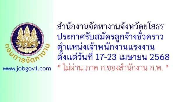 สำนักงานจัดหางานจังหวัดยโสธร รับสมัครลูกจ้างชั่วคราว ตำแหน่งเจ้าพนักงานแรงงาน ตั้งแต่วันที่ 17-23 เมษายน 2568