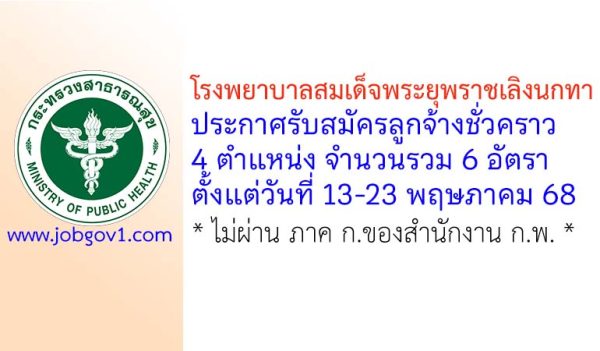โรงพยาบาลสมเด็จพระยุพราชเลิงนกทา รับสมัครลูกจ้างชั่วคราว 6 อัตรา ตั้งแต่วันที่ 13-23 พฤษภาคม 2568