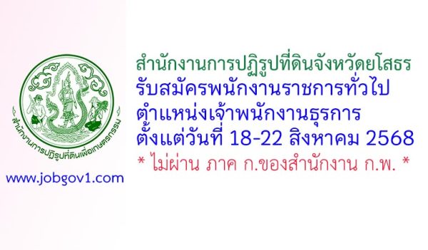สำนักงานการปฏิรูปที่ดินจังหวัดยโสธร รับสมัครพนักงานราชการทั่วไป ตำแหน่งเจ้าพนักงานธุรการ ตั้งแต่วันที่ 18-22 สิงหาคม 2568