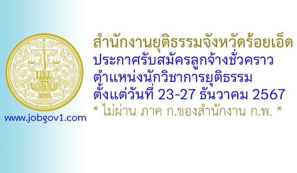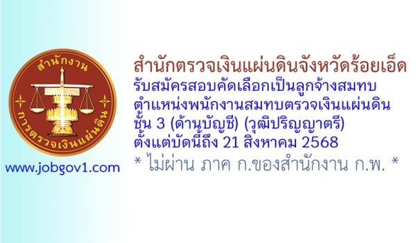 สำนักงานบังคับคดีจังหวัดร้อยเอ็ด รับสมัครลูกจ้างชั่วคราว ตำแหน่งนักวิชาการเงินและบัญชี ตั้งแต่วันที่ 8-15 ตุลาคม 2568