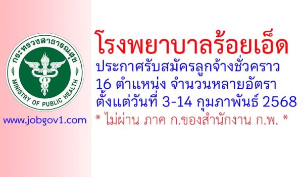 โรงพยาบาลร้อยเอ็ด รับสมัครพนักงานกระทรวงสาธารณสุขทั่วไป 3 อัตรา ตั้งแต่วันที่ 25-29 สิงหาคม 2568
