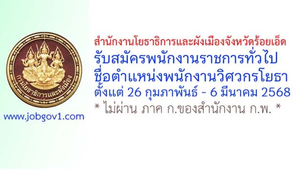 เทศบาลเมืองร้อยเอ็ด รับสมัครบุคคลเพื่อสรรหาและเลือกสรรเป็นพนักงานจ้างทั่วไป 3 อัตรา ตั้งแต่วันที่ 4-12 พฤศจิกายน 2568