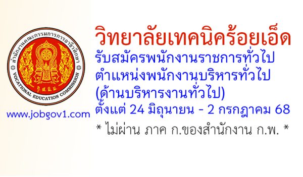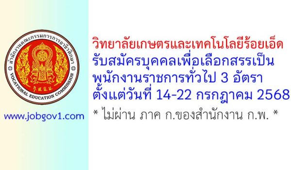 วิทยาลัยเกษตรและเทคโนโลยีร้อยเอ็ด รับสมัครลูกจ้างชั่วคราว ตำแหน่งครูพี่เลี้ยงประจำโครงการอาชีวะ สร้างช่างฝีมือ ตั้งแต่วันที่ 27-31 ตุลาคม 2568