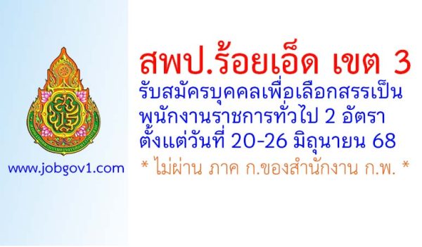 สพป.ร้อยเอ็ด เขต 3 รับสมัครบุคคลเพื่อเลือกสรรเป็นพนักงานราชการทั่วไป 10 อัตรา ตั้งแต่วันที่ 20-26 สิงหาคม 2568