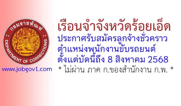 เรือนจำจังหวัดร้อยเอ็ด รับสมัครลูกจ้างชั่วคราว ตำแหน่งพนักงานขับรถยนต์ ตั้งแต่บัดนี้ถึง 8 สิงหาคม 2568