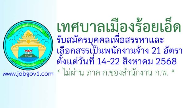 เทศบาลเมืองร้อยเอ็ด รับสมัครบุคคลเพื่อสรรหาและเลือกสรรเป็นพนักงานจ้าง 21 อัตรา ตั้งแต่วันที่ 14-22 สิงหาคม 2568