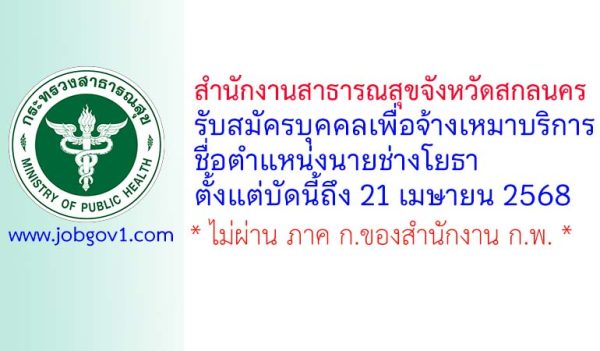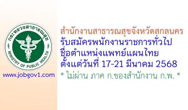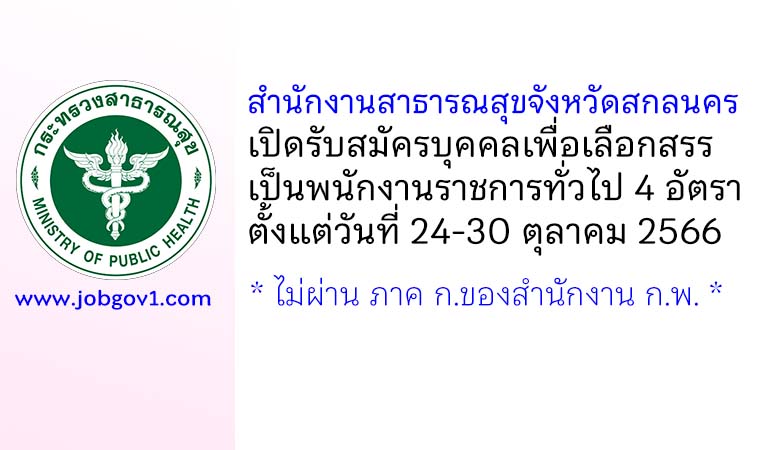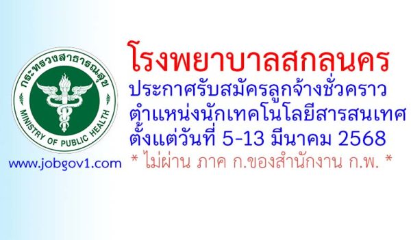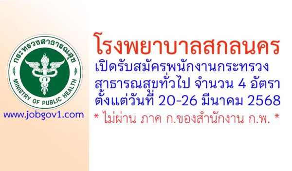 โรงพยาบาลสกลนคร รับสมัครพนักงานกระทรวงสาธารณสุขทั่วไป 26 อัตรา ตั้งแต่บัดนี้ถึง 3 ตุลาคม 2568