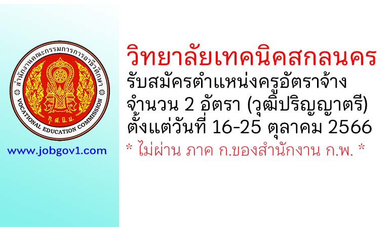วิทยาลัยเทคนิคสกลนคร รับสมัครพนักงานราชการทั่วไป ตำแหน่งพนักงานบริหารทั่วไป (ครู) กลุ่มสาขาวิชาช่างยนต์
