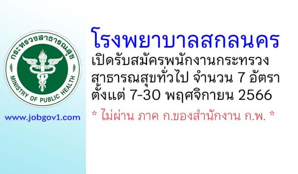 โรงพยาบาลสกลนคร รับสมัครพนักงานกระทรวงสาธารณสุขทั่วไป 26 อัตรา