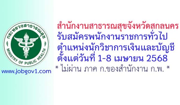 สำนักงานสาธารณสุขจังหวัดสกลนคร รับสมัครพนักงานราชการทั่วไป ตำแหน่งนักทรัพยากรบุคคล ตั้งแต่วันที่ 18-22 สิงหาคม 2568