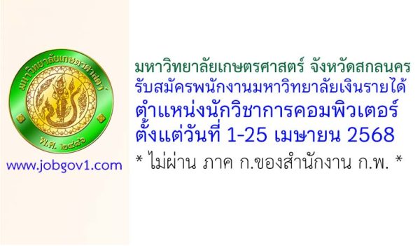มหาวิทยาลัยเทคโนโลยีราชมงคลอีสาน วิทยาเขตสกลนคร รับสมัครพนักงานราชการทั่วไป ตำแหน่งเจ้าพนักงานการเกษตร ตั้งแต่บัดนี้ถึง 9 ธันวาคม 2568