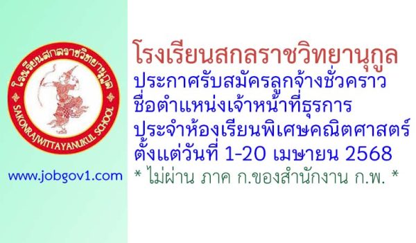 สำนักงาน ทสจ.สกลนคร รับสมัครลูกจ้างชั่วคราว 2 อัตรา ตั้งแต่วันที่ 6-10 ตุลาคม 2568