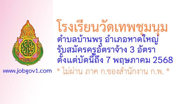 โรงเรียนราชประชานุเคราะห์ 43 จังหวัดสงขลา รับสมัครพนักงานราชการครู และครูอัตราจ้าง 2 อัตรา ตั้งแต่วันที่ 9-13 พฤศจิกายน 2568