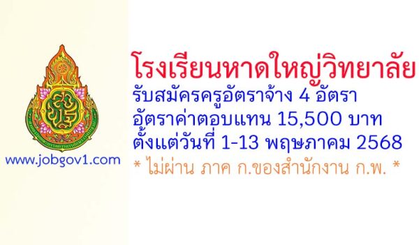 โรงเรียนหาดใหญ่วิทยาลัย 2 รับสมัครลูกจ้างชั่วคราว 2 อัตรา ตั้งแต่วันที่ 7-14 พฤศจิกายน 2568