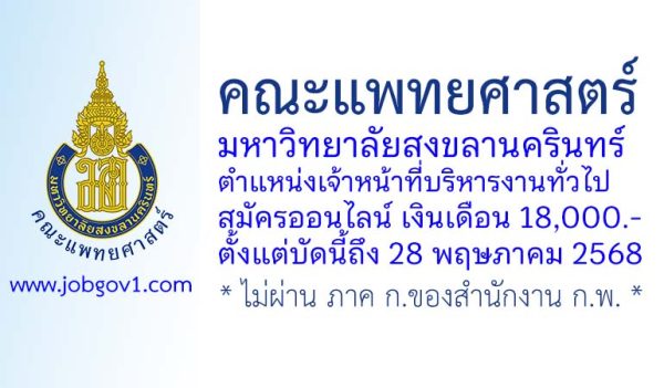 คณะแพทยศาสตร์ มหาวิทยาลัยสงขลานครินทร์ รับสมัครตำแหน่งนักวิชาการสาธารณสุข ตั้งแต่บัดนี้ถึง 10 พฤศจิกายน 2568