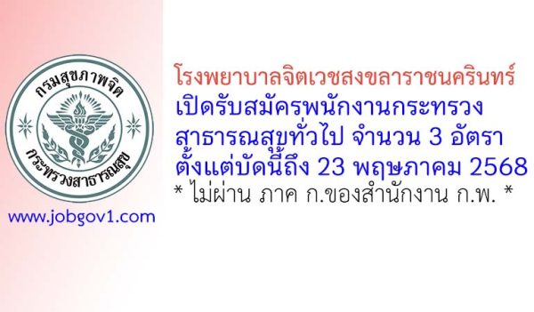 โรงพยาบาลสงขลา รับสมัครพนักงานกระทรวงสาธารณสุขทั่วไป 5 อัตรา ตั้งแต่วันที่ 12-18 พฤศจิกายน 2568