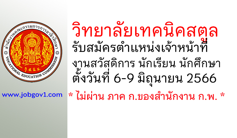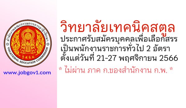 วิทยาลัยเทคนิคสตูล รับสมัครพนักงานราชการทั่วไป ตำแหน่งพนักงานบริหารทั่วไป (ด้านวิชาการศึกษา)