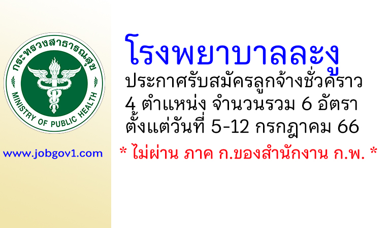 โรงพยาบาลละงู รับสมัครลูกจ้างชั่วคราว 6 อัตรา ตั้งแต่บัดนี้ถึง 6 พฤศจิกายน 2568