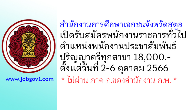 สำนักงานการศึกษาเอกชนจังหวัดสตูล รับสมัครพนักงานราชการทั่วไป ตำแหน่งครูผู้สอน (วิชาเอกฟิสิกส์)