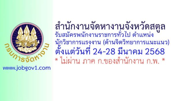 สำนักงานจัดหางานจังหวัดสตูล รับสมัครพนักงานราชการทั่วไป ตำแหน่งนักวิชาการแรงงาน (ด้านจิตวิทยาการแนะแนว) ตั้งแต่วันที่ 24-28 มีนาคม 2568
