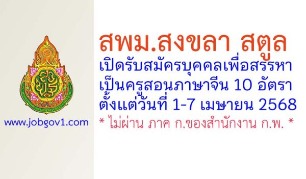 สพม.สงขลา สตูล รับสมัครครูผู้สอนภาษาจีน จำนวน 10 อัตรา ตั้งแต่วันที่ 1-7 เมษายน 2568