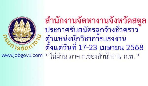 สำนักงานจัดหางานจังหวัดสตูล รับสมัครลูกจ้างชั่วคราว ตำแหน่งนักวิชาการแรงงาน ตั้งแต่วันที่ 17-23 เมษายน 2568