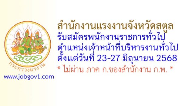 สำนักงานแรงงานจังหวัดสตูล รับสมัครพนักงานราชการทั่วไป ตำแหน่งเจ้าหน้าที่บริหารงานทั่วไป ตั้งแต่วันที่ 23-27 มิถุนายน 2568