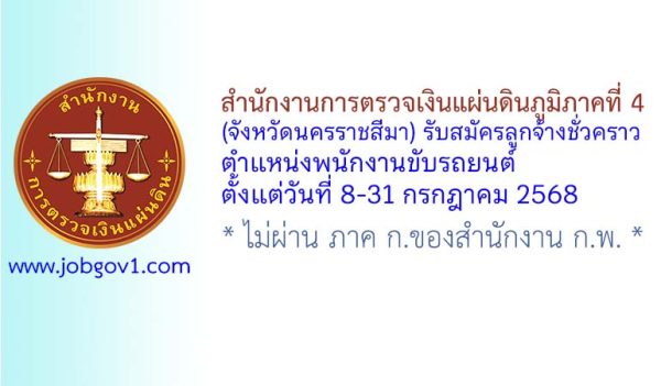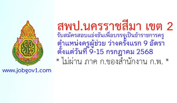 สพป.นครราชสีมา เขต 4 รับสมัครบุคคลเพื่อเลือกสรรเป็นพนักงานราชการทั่วไป 10 อัตรา ตั้งแต่วันที่ 15-19 ธันวาคม 2568